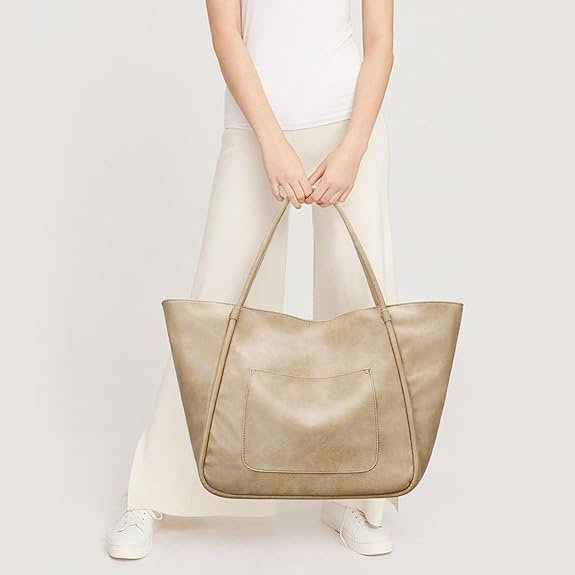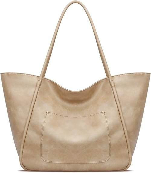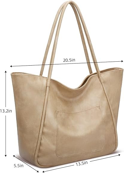 KKXIU Large Tote Bag for Women with Zipper Work Leather Travel Purse and Handbags(Beige)