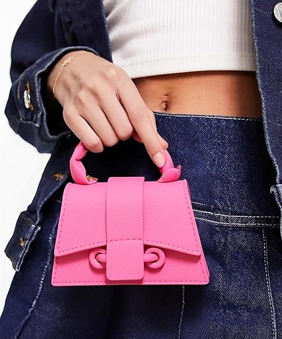 Micro Mini Crossbody Handbag Women’s Purse Clutch Cute Mini Trendy Bag Top Handle PU Leather Shoulder Bag(Pink)