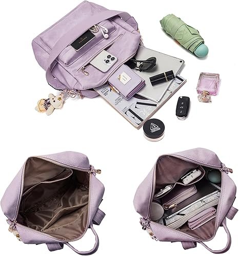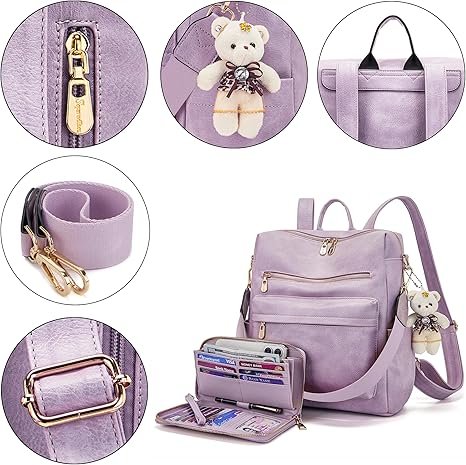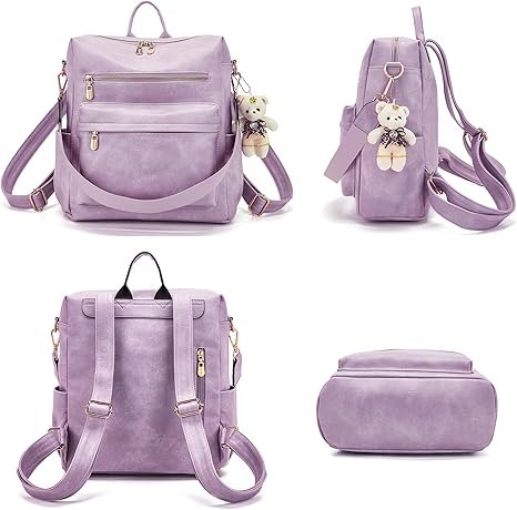 Women Backpack Purse Multipurpose Design Handbags Shoulder Bag PU Leather Travel bag Backpack Set 2pcs(Lightpurple)