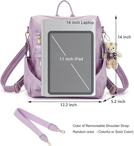 • ROOMY:Backpack purse: 1 main compartment with 1 inner zipper pockets, 2 inner slot pocket, 2 front zipper pockets, 2 side pockets and 1 back zipper pocket. Multi-pockets are enough for you to hold your things like 14″ or under laptop, iPad, A4 files, books, umbrella, sunglasses, cosmetics and other daily things, keep your daily items well organized.