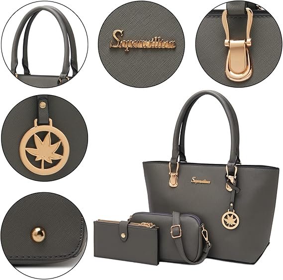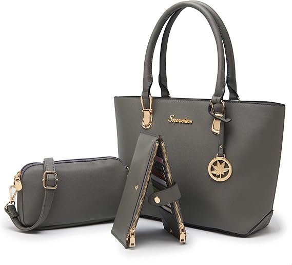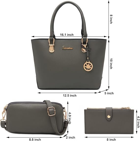 Women Handbags Wallet Tote Bag Shoulder Bag Top Handle Satchel 3pcs Purse Set(Darkgrey)
